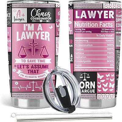 Lawyer Gifts for Women, Future Female Lawyer Law School Graduation Bar Exam Attorneys Gifts, 20oz Stainless Steel Tumbler with Lid Straw, Pink